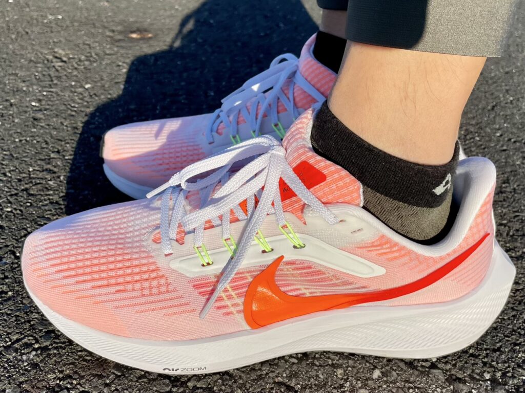 39との違いは、39がもう800km超えてるから正しい比較かわからないけど、10km走ったあと母趾球・小趾球含めた中足骨頭部(指と土踏まずの間)周りの筋肉がいつもより張っていて、ソールが今までより少し硬いのか反発強いのか、そのあたりは違いそう。